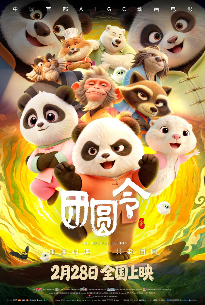 中国首部AIGC动画电影《团圆令》开启预售,并将于2月28日(正月十二)登陆大银幕。影片以献台熊猫“团团”“圆圆”为原型,讲述了主角团仔在家园沦陷、至亲失散后,毅然踏上寻找妹妹圆妞的征程,跋山涉水集齐五行之力守护熊猫村的故事。