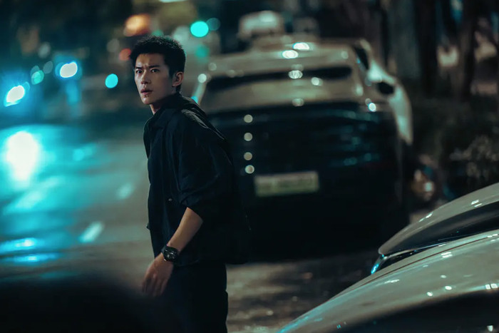 在角色设置上,《惊蛰无声》沿用了“双重卧底”的设定。严迪(易烊千玺)与黄凯(朱一龙)皆为国安小组干警,为解除核心科技情报遭遇窃取的危机,共同执行追捕间谍、查出内鬼的任务。然而,二人的身份与处境暗藏裂隙:黄凯在境外间谍势力的策反下逐渐动摇,徘徊于忠诚与背叛之间;严迪的身份则更为复杂——表面上是潜伏在国安系统内部的卧底,实则是暗中破坏敌方计划的“谍中谍”。多重身份的叠加让严迪与黄凯缠绕在亦敌亦友的关系里,也让他们之间的交锋充满了张力。在夜色笼罩的都市空间里,二人不断展开侦察与反侦察的较量;在一次次紧张的追踪与对峙中,影片试图建立起心理与视觉层面的双重压迫。